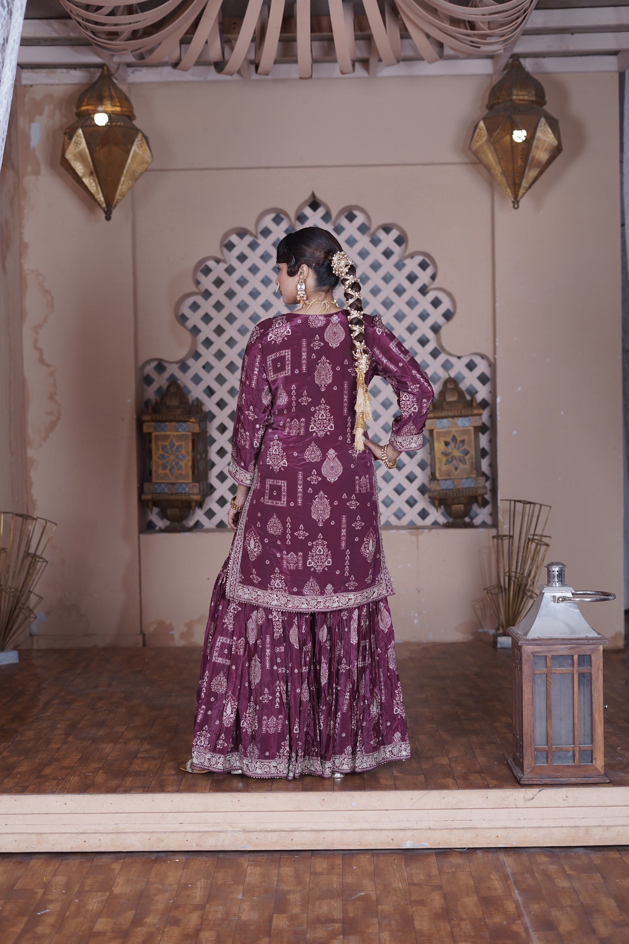 Mehfil Maroon Natural Crepe Gharara Suit Set