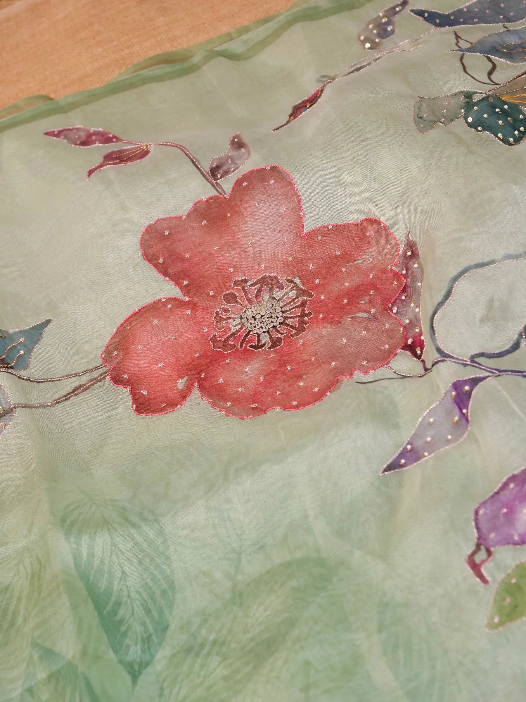Handwoven Pastel Green Banarasi Organza Silk Saree | GYSY Sarees