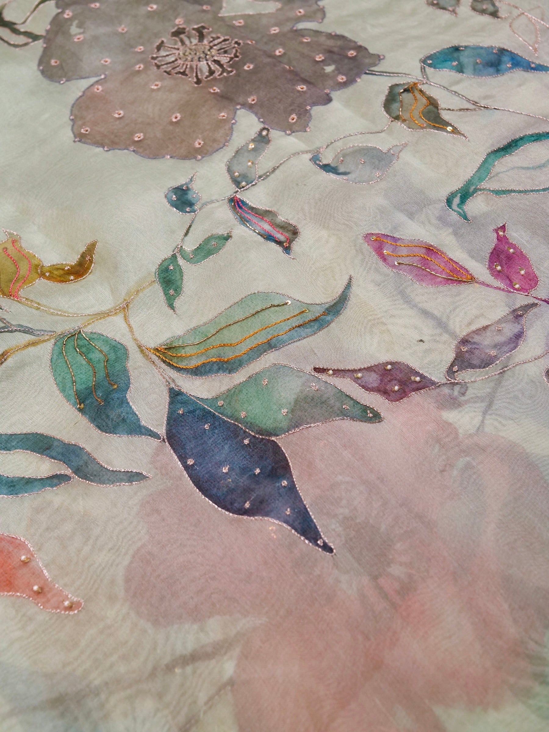 Discover understated sophistication in this handwoven Banarasi Organza Silk Saree, where traditional craftsmanship meets contemporary design. The soft pastel green palette creates a serene aesthetic, while intricate hand-embroidered motifs elevate the fabric with refined detailing. Organza silk's naturally lightweight composition ensures effortless draping and comfort throughout your event. Ideal for weddings, receptions, and formal occasions, this saree arrives with a coordinated blouse, offering a complete, polished ensemble for the discerning wearer.